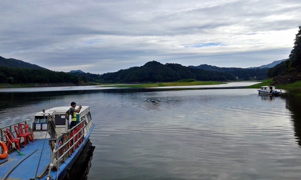 호수 건너편 소정리를 오가며 바쁘게 주민들을 실어 날랐던 철선 한 척도 선착장에 의지해 쉼을 청한다. 지난 겨울 막지리 주민들의 교통편의를 위해 K-water가 지원한 수륙양용 공기부양정은 물 빠진 곳, 초지에서 ‘임무수행 대기 중’이다. 요놈 타고 용호리 선착장으로 가서 두 번째 플러스 알파 구간(14-2구간)을 시작하면 ‘딱’인데 희망사항일 뿐이다. 그냥 눈요기로만 만족한다. 평온한 호수를 뒤로하고 다시 장고개로 향한다. 소소한 호반의 모습을 눈에 새기며 발걸음의 무게를 애써 잊는다. 장고개부터 종점(은운리)까진 포장길이다. 과수원집에서 흘러나오는 뽕짝 장단에 발걸음을 맞추며 15구간의 여정을 접는다.