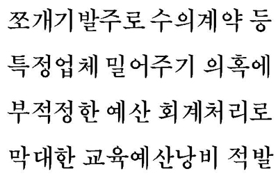 일선 학교들이 특정업체를 밀어주기 위해 분할 발주하는 것은 교육재정 운용의 투명성을 위협하는 것은 물론 교육예산을 과다하게 지출시키는 등의 부작용이 있는 만큼 철저한 관리 감독이 뒤따라야 한다는 지적이다.
