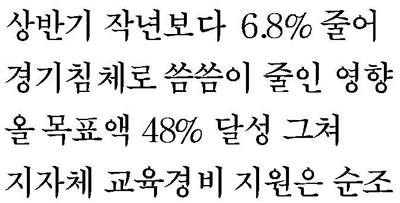 자치단체들의 순조로운 교육경비 지원과는 달리 민간재원은 지난해보다 확보 실적이 크게 저조해 교육 분야 지원에 대한 도내 기업 등의 관심 제고가 요구된다.