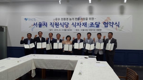 이날 협약은 우수농산물 생산 농가에는 안정적인 판로제공을 서울시 직원식당은 농민단체와 직거래를 통해 건강하고 믿을 수 있는 농산물을 제공받기 위해 이뤄졌으며 서울시의 사전심사를 통해 우수 지자체로 선정된 당진시, 군산시, 영광군, 영양군 등 4개 기초자치단체와 농민단체 기관 관계자들이 참석한 가운데 진행됐다.