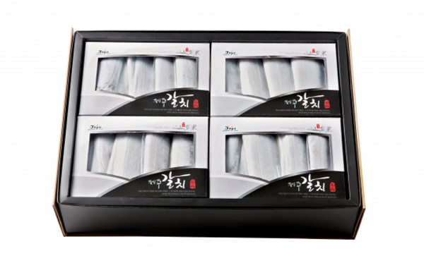 ‘제주어가 갈치세트’는 제주도 성산포 청정해역에서 당일 어획한 ‘당일바리’ 채낚기 상품으로 원어 마리당 600g 이상의 크기만을 선별해 가공했다. 선도와 맛이 뛰어난 고급갈치로 가격은 18만 원이다.