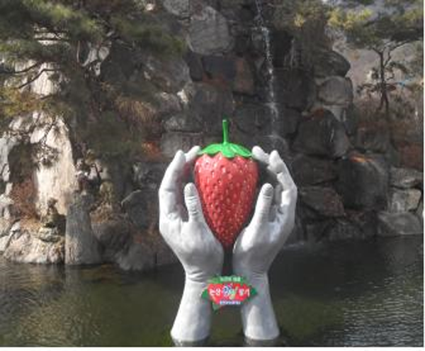 그 옆으로 논산의 특산품인 딸기를 대형조형작품으로 만들어 방문객의 눈길을 끈다.