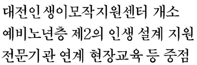 대전인생이모작지원센터는 높은 경제수준과 학력을 갖고 있는 베이비부머 세대를 위해 사회공헌·창업·재취업 등의 프로그램을 운영하게 된다. 올해는 예비노년층(50~65세 미만)의 특성과 제2의 인생설계에 대한 다양한 욕구 해소를 위해 오는 12일부터 내달 말까지 시니어 사회서비스코칭 지도자양성, 소상공인 비즈니스마스터 양성과정, 에코-크린 프로 양성 등 3개 과정 75명을 대상으로 이론과 현장교육을 실시한다.