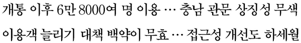 이는 일평균 377명(주중 311명, 주말 544명)이 이용한 것으로, 역사의 규모와 충남 중심부 역사라는 상징성을 고려하면 형편없는 수준이다.