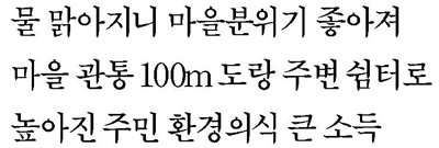 그러면서 물이 맑아지니 마음이 맑아지고 동네가 화목해졌다는 사실을 스스로 깨달았다.