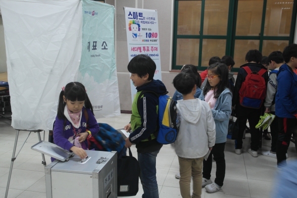이번 투표체험은 세대별로 다양한 관심사를 5개 항목으로 구성, 공직선거에서 사용하는 투표용지 발급기를 이용, 시민들이 사전투표 모의체험한 것으로, 초등학생의 경우 가장 큰 관심사로 ‘가정 행복’(37.1%)이 꼽혔고, ‘성적 향상’(17.6%), ‘자유시간’(16.8%), ‘용돈 많이 받기’(15.5%), ‘예뻐지기’(13%) 등이 뒤를 이었다.