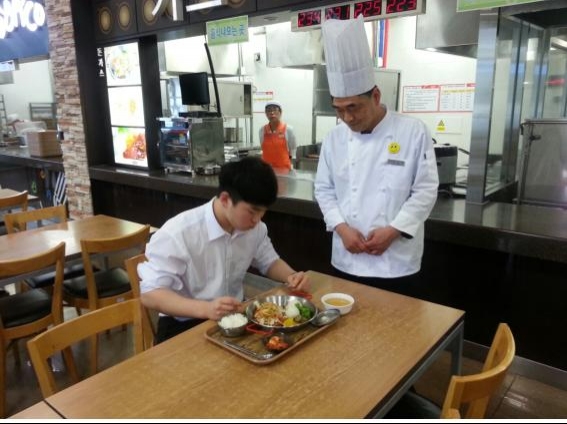 공주~서천 고속도로 부여백제휴게소(소장 남선근)는 신메뉴품평회를 통해 돈가스와 우동을 함께 맛볼 수 있는 ‘적셔먹는 돈가스정식’을 출시, 조리사가 ‘적셔먹는 돈가스정식’을 고객에게 선보이고 있다.