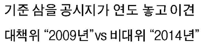 지금까지 LH와 협의해온 과학벨트 신동·둔곡지구 보상대책위원회(이하 대책위)가 지난 2009년 비교표준지 공시지가를 보상기준으로 삼는 데 수용했다. 그러나 이를 받아들일 수 없다는 입장을 고수한 주민들이 과학벨트주민비상대책위원회(이하 비대위)를 조직해 토지보상 기준일을 재차 2014년으로 주장하고 나섰다.