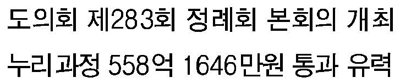 도의회는 이날 제283회 정례회 본회의를 열고 2016년 충청남도교육비특별회계 세입세출 예산안 등 44개 안건을 처리한다.