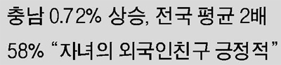 또 자녀가 외국인 친구를 사귀거나 외국인과 결혼하는 것 등에 대해 긍정 평가하는 비율이 높아 다문화에 대한 수용성이 높은 것으로 나타났다.
