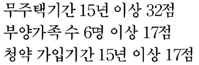 다시 말해 청약가점제 수요자의 무주택 기간, 부양가족 수, 청약통장 가입기간에 따른 합산가점이 높은 청약자를 분양당첨자로 뽑는 제도라 할 수 있습니다.