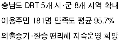 ‘효도버스’라는 별칭으로 추진되고 있는 충남도의 ‘수요응답형 교통체계(DRT·Demend Responsive Transport)’가 올해 확대 운영된다.
