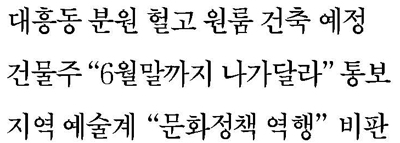 또 다른 단체 관계자도 “서울 등 다른 도시에서는 시에서 보호하고 지속적으로 유지해나가야 할 공간을 매입해 단체들에게 월세를 주는 방법으로 문화를 유지하고 있다”며 “대전의 얼마 남지 않은 근대화 공간이 원룸촌으로 변해가는 현상을 정책적으로 막아야 할 것”이라고 꼬집었다.