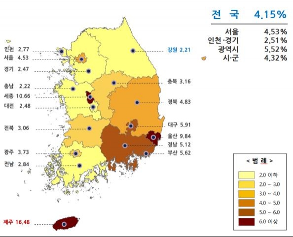 세종은 10.66%나 올라 제주(16.48%) 다음으로 높은 상승률을 보였다.