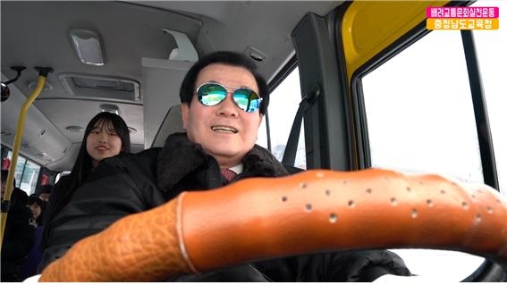 지난해 고3 수험생을 응원하는 동영상에 직접 출연해 화제를 모았던 김지철 충남도교육감이 이번에는 통학버스 운전기사로 깜짝 변신했다.