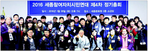 ‘세종시 정상추진’과 ‘권력 감시’를 목표로 활동을 하고 있는 세종참여자치시민연대(상임대표 임효림)가 지난달 26일 정기총회를 개최하고, 조직개편과 사업계획 등을 승인하며 2016년 도약을 위한 다짐의 자리를 가졌다.
