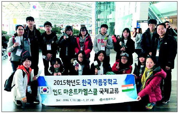 아름중학교(교장 사진숙)가 인도의 찬디가르에 소재한 인도 마운트 카멜 학교(교장 Dr. Charles Samuel)와 교류학습을 진행했다.