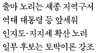 일부 예비후보들은 그동안 여론 조사 결과 등 지역의 여론에 귀를 기울이고 우선 본선에 진출하기 위한 경선을 겨냥해 세종시 곳곳을 누비고 있다.