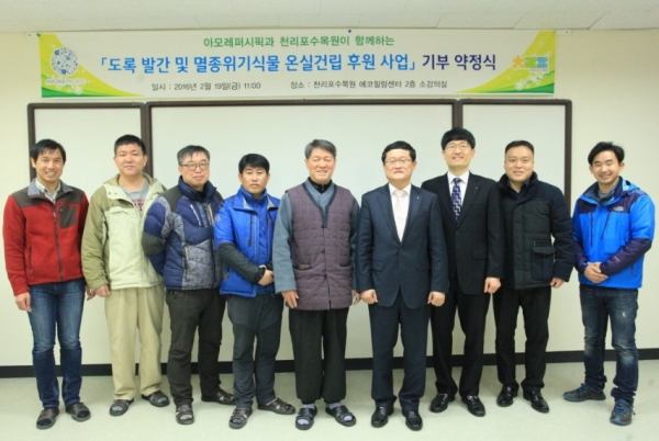 아모레퍼시픽은 최근 충남 태안 천리포수목원과 가시연꽃·매화마름·노랑붓꽃 등의 멸종위기식물 보존을 위한 후원 약정을 체결했다.