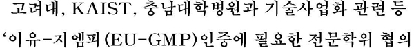 스테판 번 코크약대학장은 “이유-지엠피(EU-GMP) 인증을 위해서는 제품의 안전성, 품질관리, 제조시설, 품질보증시스템 등을 실현할 수 있는 의약품 연구생산 전문 인력이 필요하다”면서 “행복도시에서 이유-지엠피(EU-GMP) 인증에 필요한 전문 학위과정 개설을 고려대와 협의하겠다”고 밝혔다.