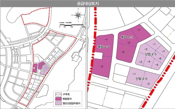 첨단산업용지는 3.3㎡에 159만∼169만원, 상업시설이 10% 허용되는 복합용지는 220만∼243만원으로 공급한다.