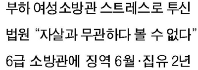 화재를 진압하는 9급 여성소방관에게 술자리를 강요하고 뇌물수수와 직권남용까지 한 6급 소방관에 대한 항소심에서 징역형이 유지됐다. 이 여성소방관은 이후 어떤 이유에서인지 스스로 목숨을 끊었는데 법원은 자살의 원인과 피고인의 행위가 ‘전혀 무관하지는 않은 것으로 볼 여지’가 있다고 판단했다.