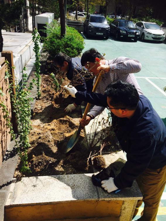 한국농수산식품유통공사(aT) 대전세종충남지역본부(본부장 송기복) 직원들이 5일 제71회 식목일을 맞아 사옥 주변에 영산홍, 꽃잔디 등을 식재하고 있다. aT 대전세종충남지역본부 제공