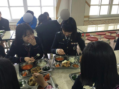 대전중부경찰서는 오는 8일까지 대전여중에서 ‘학교 다녀오겠습니다’ 캠페인 및 학교폭력예방 교육을 실시, 학교전담 경찰관이 일주일간 학생들과 생활하면서 급식시간과 쉬는 시간 등을 이용해 학교폭력예방 활동을 진행한다. 중부경찰서 제공