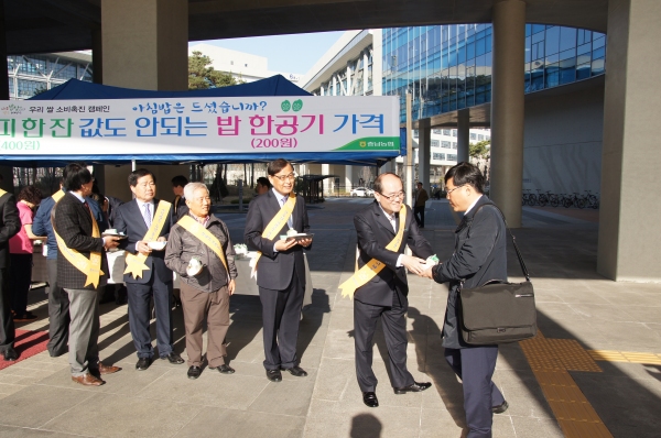 이에 이날 충남농협 임직원과 RPC 운영협의회원, 충남 관내 조합장들은 ‘쌀은 이제 세상이 달라져 남아도는 시대가 됐다’고 판단, 아침밥 먹기 운동을 통해 쌀 소비를 확대하자는 취지에서 출근길 시민과 학생을 대상으로 백설기 떡, 우유, 홍보물 등을 나눠주며 “쌀 과잉재고는 쌀값 하락 요인으로 농가 소득 하락은 물론 쌀 산업에 종사하는 산지유통업체의 지속 가능한 발전도 어렵게 하고 있다”고 소비 촉진을 호소했다.