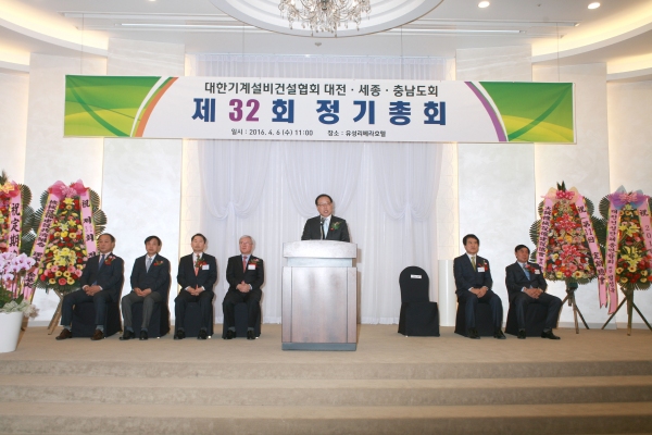 대한기계설비건설협회 대전·세종·충남도회(회장 박육순)는 6일 대전 유성리베라호텔에서 ‘제32회 정기총회’를 개최했다. 이날 총회에서는 2015회계연도 세입·세출 결산안 및 2016회계연도 사업계획·예산안 심의결과, 임·직원 자녀 장학금 전달식, 기계설비건설협회 업계 발전 공로자 공로패 수여식 등이 이어졌다.