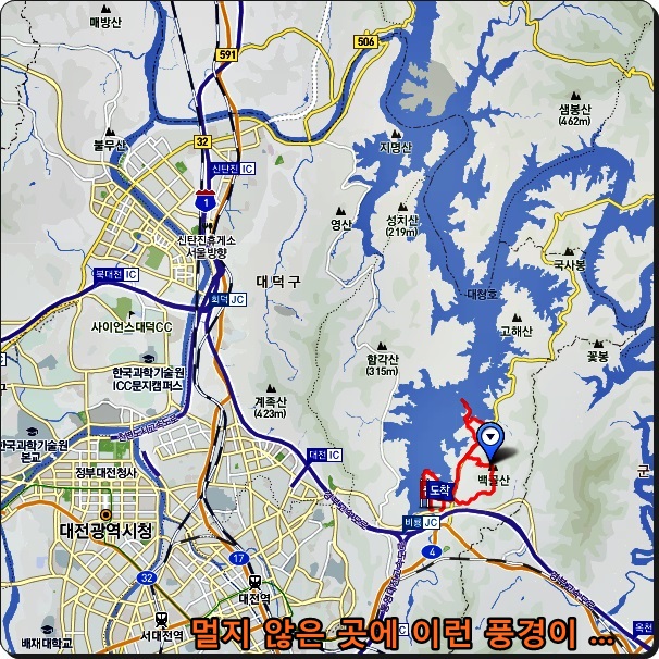 대청호오백리길 5구간은 이 중 초입부분을 품고 있는데요, 벚꽃길뿐만 아니라 흥진마을반도길, 방축골길의 아름다움과 백골산에서 바라보는 풍경으로 유명한 곳입니다.