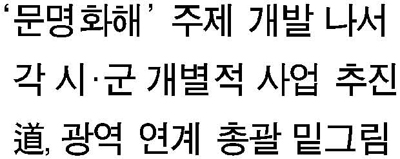 충남도가 ‘문명과 화해’를 주제로 하는 국제포럼을 준비하면서 전체적인 사업을 총괄하고, 각 시·군이 개별적으로 테마 사업을 추진하면서 도가 이를 연계시켜 내는 것으로 그림이 그려지고 있다.