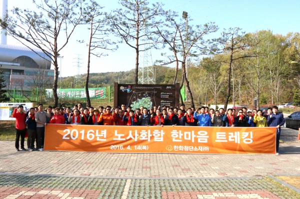 한화첨단소재는‘노사발전 로드맵’을 기반으로 트레킹 행사를 비롯해 미니운동회, 단체산행 등 노사가 함께 참여하는 다양한 노사화합 소통 프로그램을 통해 화합과 상생의 노사문화를 정착시켜 나가고 있다.