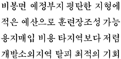 특히 소방복합단지 예정용지는 청양군의 경제적 조건으로도 다른 지역에 비교할 수 없을 만큼 저렴하다.