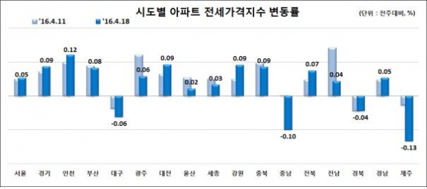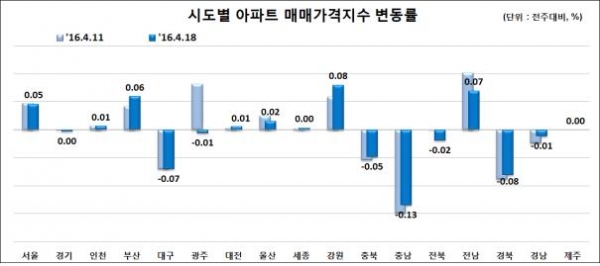 대전의 경우 매매가격이 0.01% 오르면서 상승세를 보였고, 전셋값은 0.09%로 상승세가 서서히 진행되고 있다.