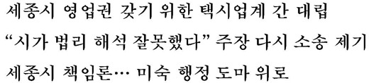 세종시 출범하면서 '웅진택시·한일여객'에 대해 택시사업구역 변경을 해준 세종시의 처분이 위법하다는 법원의 판결이 나와 뜨거운 감자로 대두되고 있다.