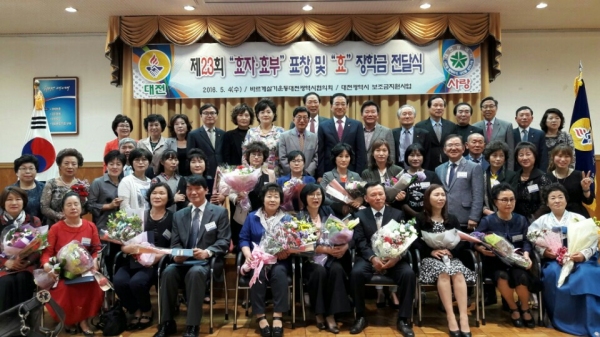 이날 시상식에서 최교선(73)·정재윤(65) 부부(대전 서구 관저동) 등 16명이 효자·효부로 선정돼 대전시장 표창을, 둔산여고 송유나(3학년) 양 등 9명의 학생이 효행학생으로 뽑혀 대전시장 표창을 각각 받았다.