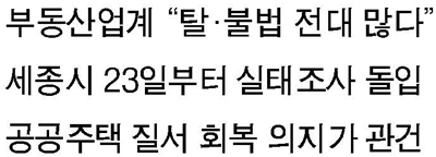그동안 세종시 분동산업계는 신도시 아파트 불법 전매와 다운계약서에 이어 공공건설 임대아파트의 불법 전대도 이뤄지고 있다는 것이 공공연한 사실이라고 말한다. <본보 5월 16일자 1면 보도>