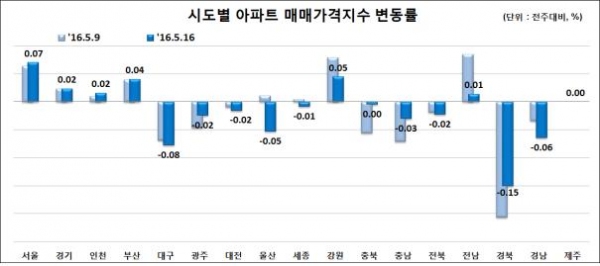 이 기간에 세종은 0.01% 떨어져 지난달부터 보합세가 계속되고 있다.