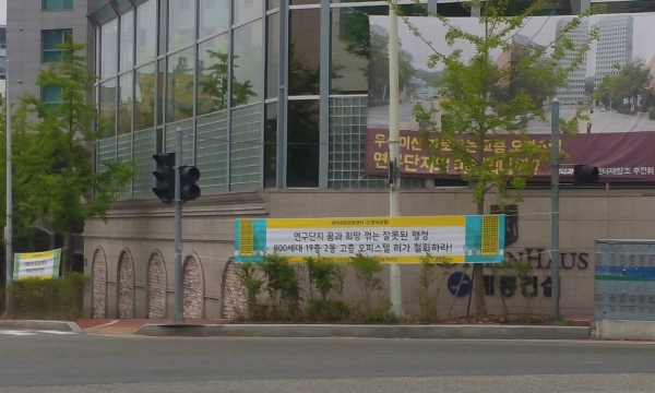 재창조추진위원회는 대덕과학문화센터 부지 주변에 ‘연구단지 꿈과 희망 꺾는 잘못된 행정 800세대 19층 2동 고층오피스텔 허가 철회하라’고 적힌 현수막을 내걸고 쌍둥이 오피스텔 건립반대를 분명히 하고 있다.