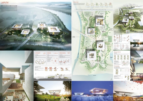 ‘LAPUTA’는 한국 처마를 새롭게 재해석하여 구릉지에 떠 있는 다핵구조를 형성함으로써 건물군을 아이콘화한 점이 참신하고 매력적이라는 평가를 받았다. 박물관 단지 전체를 4개의 박물관군으로 묶어 집중화시킴으로써 단지 내 오픈스페이스를 극대화했으며, 중앙공원과 연결되는 2개의 구릉지의 지형적 기복은 보행자 스케일에서 다양한 공간을 생성한다.