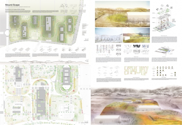 ‘Mound-scape’는 평면적인 주변 경관과 차별화된 지형의 자연스러운 고저차를 만들고 건축물과 자연이 하나가 되는 컨셉을 제안한 독창성이 돋보이는 작품이다. 다양한 형태의 마운드가 만드는 내부공간과 경관이 흥미로우며 건축물의 지면 노출을 최소화하면서도 필요한 기능들을 적절히 통합·수용한 것으로 평가됐다.
