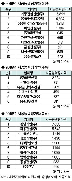 계룡건설과 금성백조주택, 파인건설 등 대전 소재 건설사들이 올해 시공능력평가에서 약진했다.