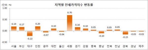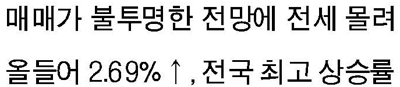 지난 6월 13일 대비 7월 10일 기준 전셋값도 0.70% 올라 전국에서 상승폭이 가장 컸다.