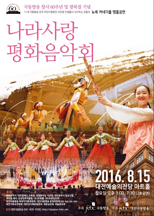 극동방송 창사 60주년과 광복절 71주년을 맞아 한반도 평화와 통일을 기원하는 ‘나라사랑 평화음악회’가 대전에서 열린다.