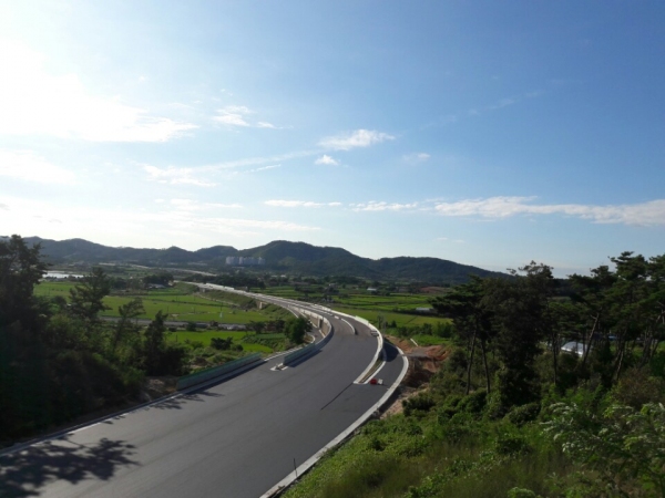 국내 3대 석유화학단지가 위치한 서산시 대산읍과 당진시 석문면을 잇는 국도38호선 확포장(13.8㎞) 사업은 공정률 93%로 올해 말 개통 예정이다. 굴곡진 도로 선형을 바로 잡고 2차선을 4차선으로 확장 중이다.