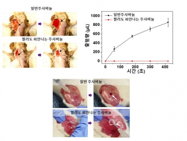 KAIST 화학과 이해신 교수와 안정성평가연구소 강선웅·김기석 박사 연구팀, ㈜이노테라피 이문수 대표가 공동으로 개발한 이 기술은 일반 주사바늘에 지혈재료를 코팅해 주사 후 상처부위를 물리적으로 막아 자발적으로 지혈할 수 있게 만드는 방식이다.