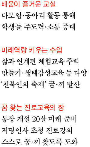 천북초 김태길 교장은 “배움이 자신의 삶과 연결될 때, 배우고 싶은 것을 배울 때, 스스로 배움의 주도권을 가질 때, 배운 것을 실천할 때 비로소 참학력을 갖춘 미래인재로 성장할 수 있다”며 “학생들이 꿈과 끼를 마음껏 펼치고 미래를 준비할 수 있도록 삶과 연계된 교육을 강화해 나갈 것”이라고 말했다.