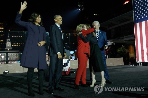 클린턴은 결전을 하루 앞둔 7일 승부처인 펜실베이니아 주에서 버락 오바마 대통령 부부와 첫 공동유세를 갖고 굳히기에 몰두했다.