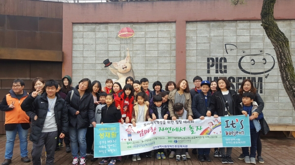 대전시립장애인종합복지관(관장 윤창노)은 지난 18일 경기 이천 돼지박물관에서 장애아동과 부모 간의 애착관계 형성, 사회성 향상을 위한 힐링테라피 프로그램 ‘엄마랑 자연에서 놀자’를 진행했다. 대전시립장애인종합복지관 제공